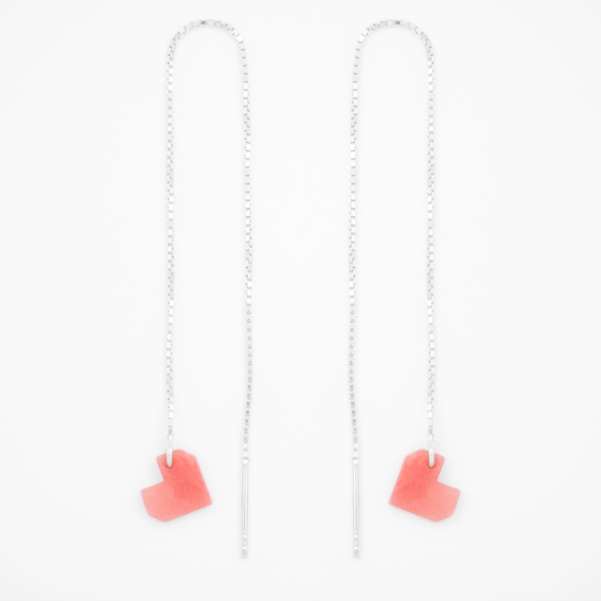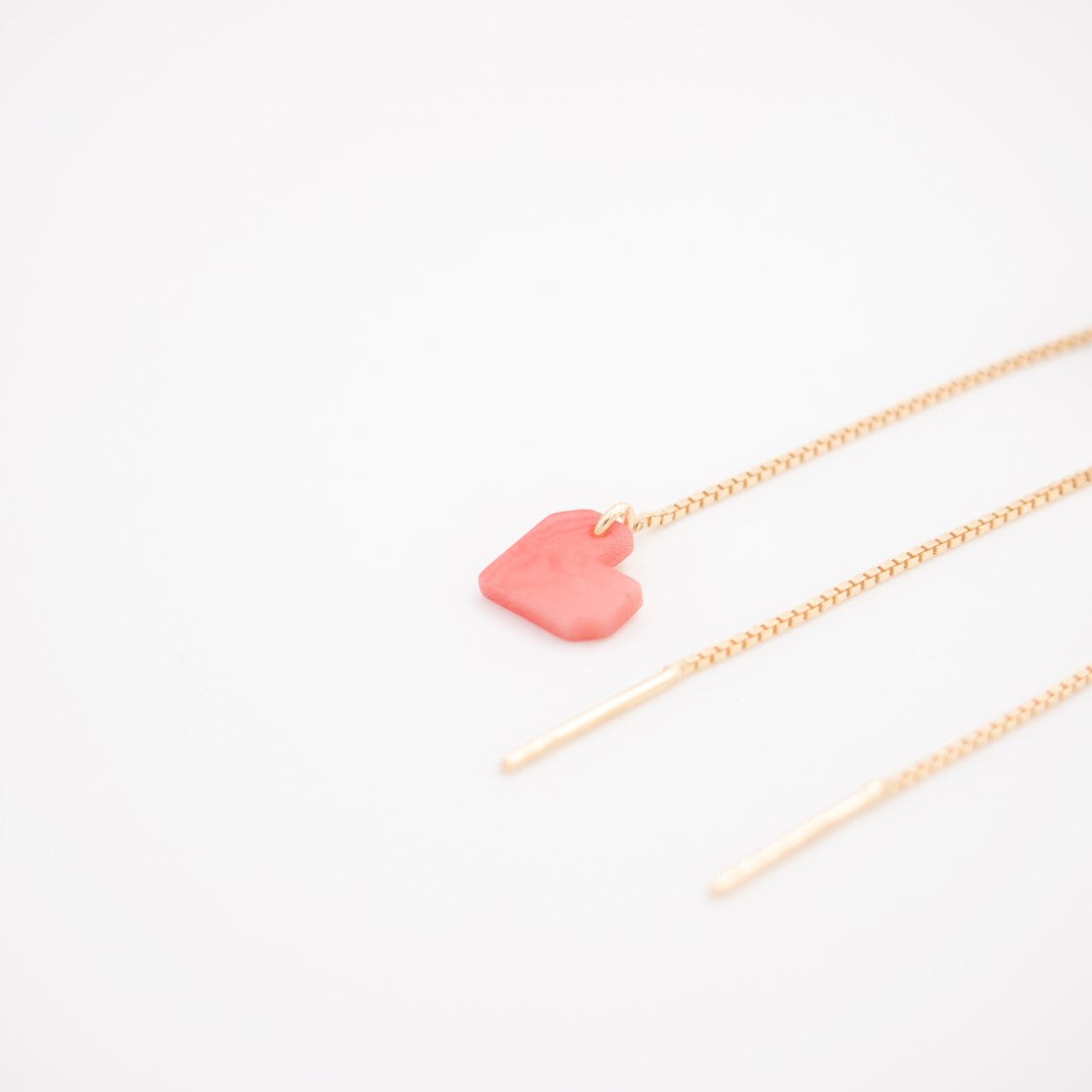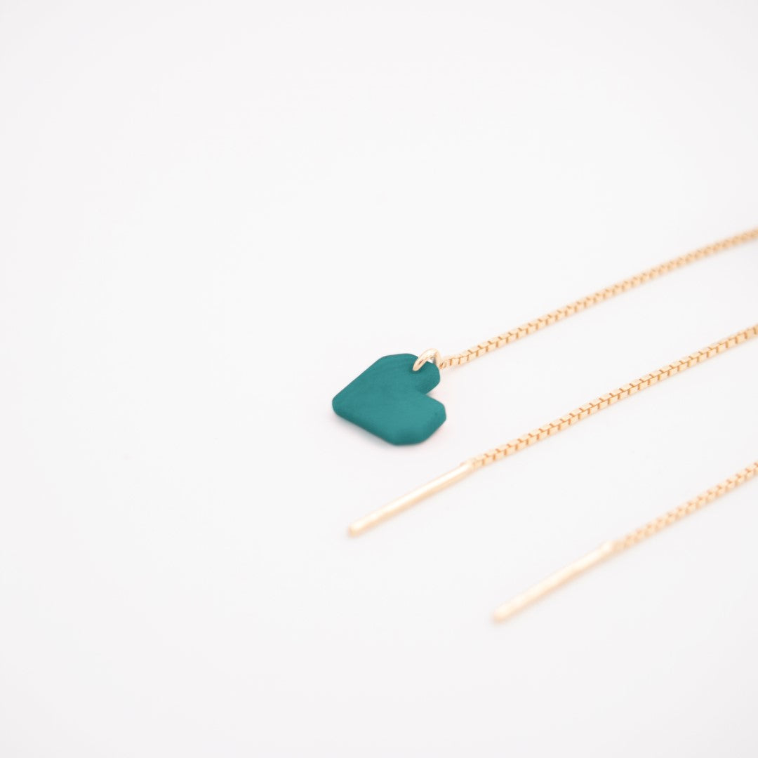 Boucles d’oreilles chaîne traversante cœur faites main en ivoire végétal dessinées et assemblées dans notre atelier à Montpellier.