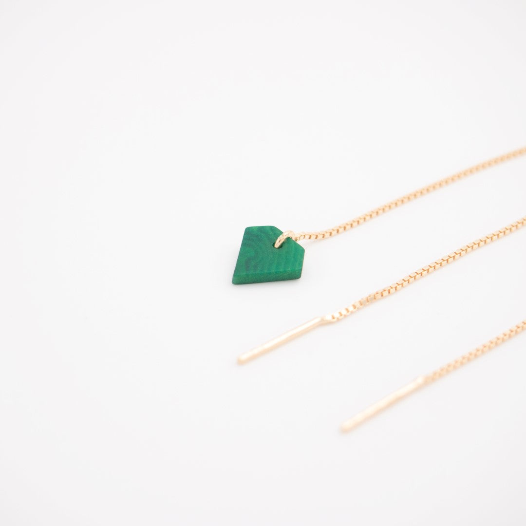 Boucles d’oreilles Diamant en ivoire végétal, chaîne traversante en Acier Doré, Argent ou Plaqué Or 3 microns – Vert