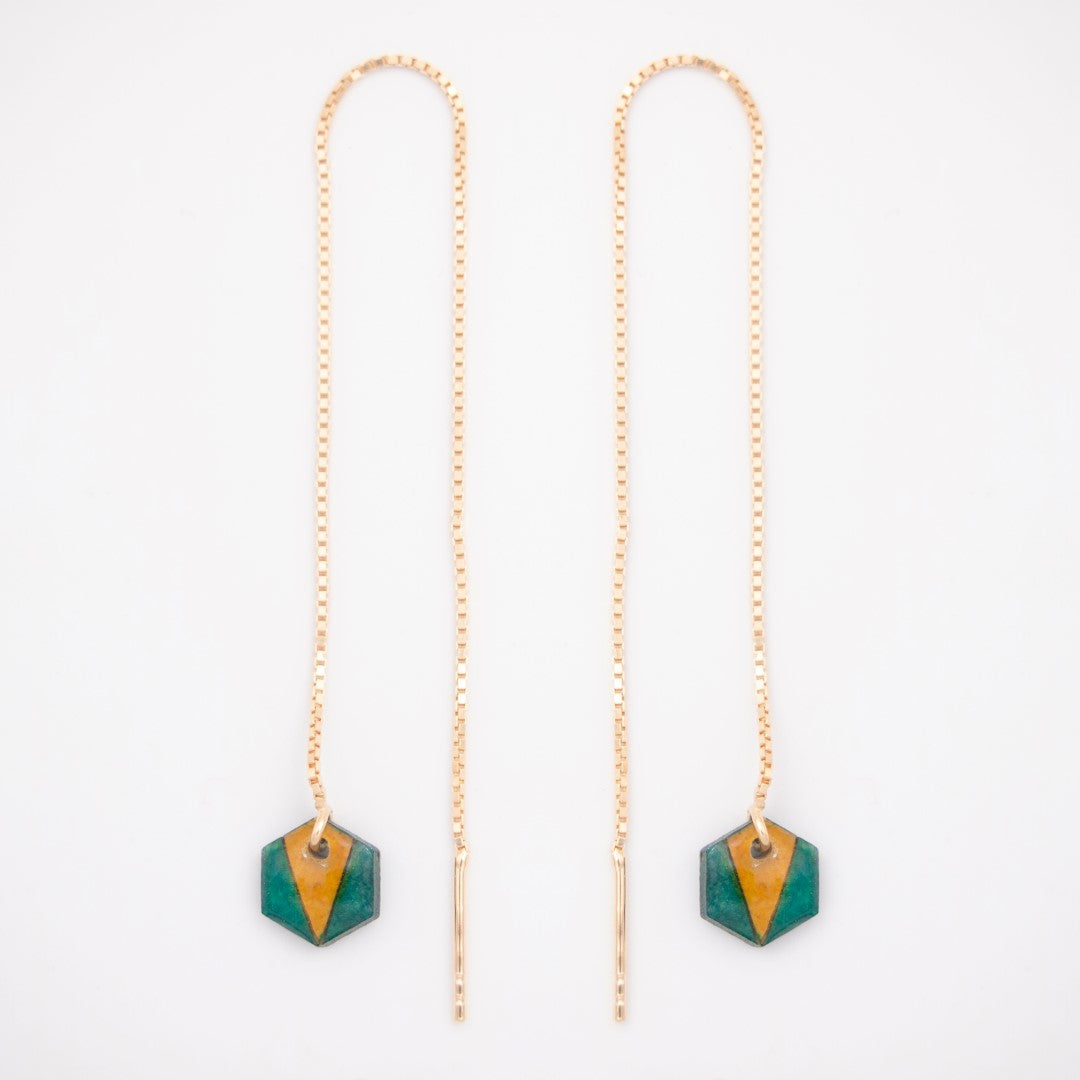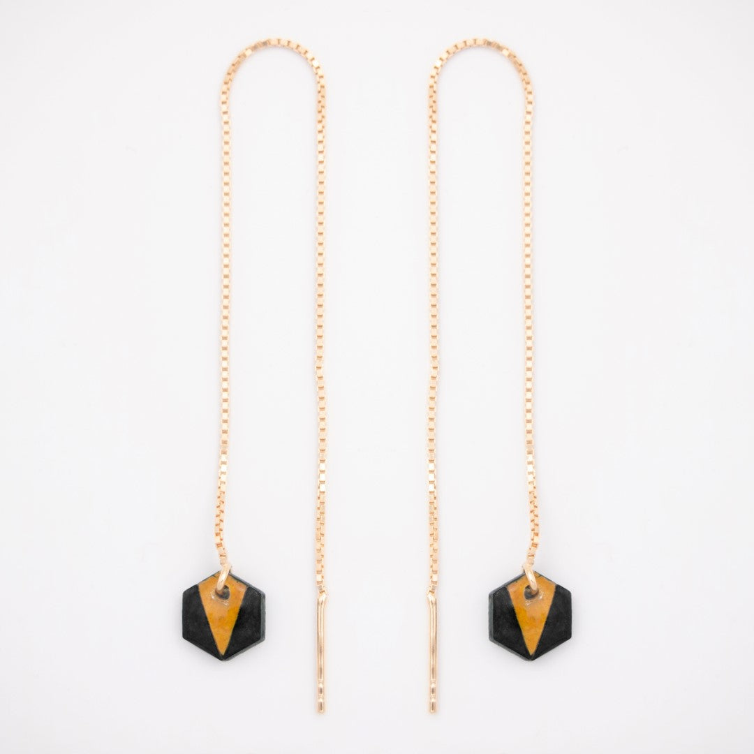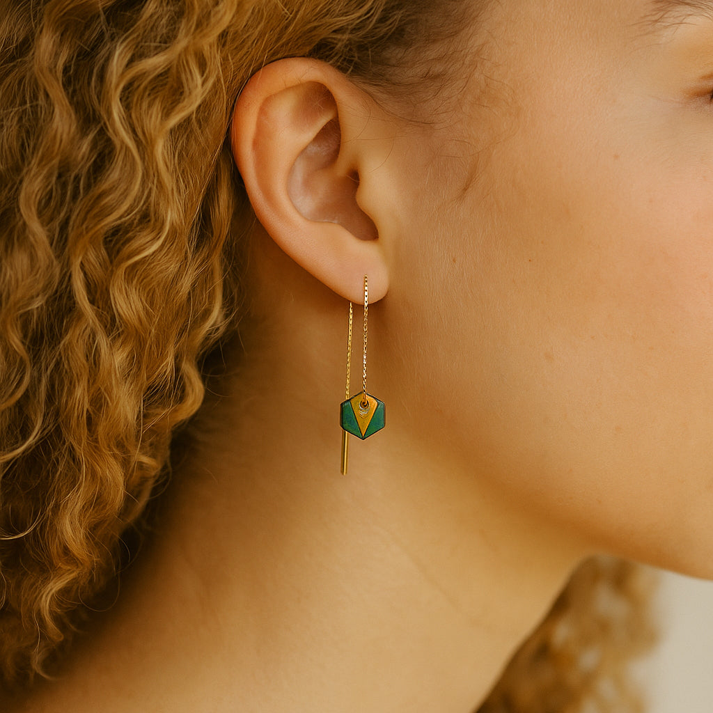 Boucles d’oreilles Hexagone en Calebasse séchée chaîne traversante en Acier Doré, Argent ou Plaqué Or 3 microns | Hex Pic – Canard-Jaune