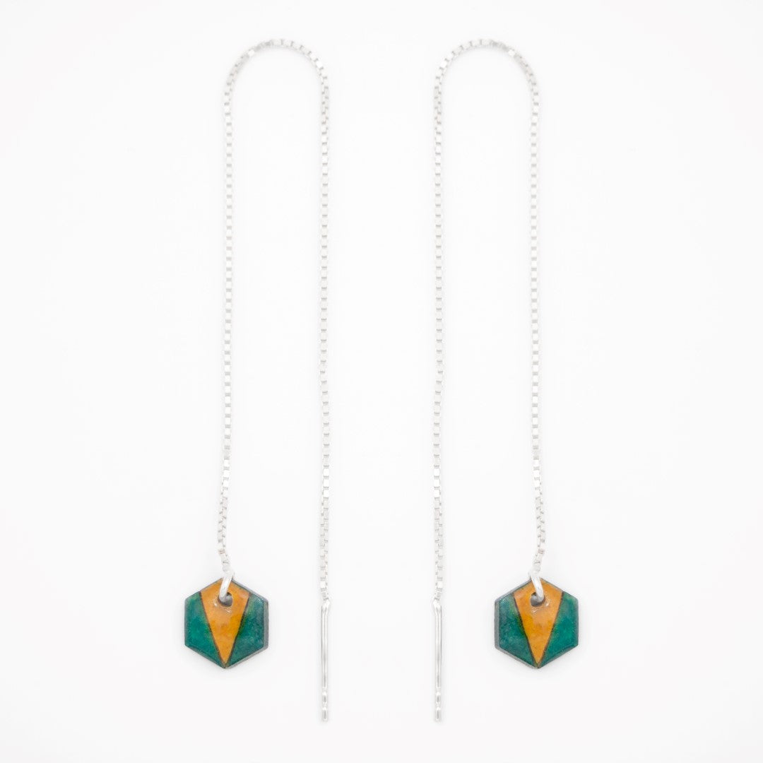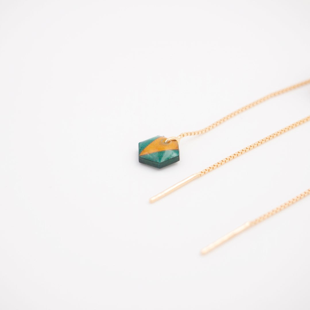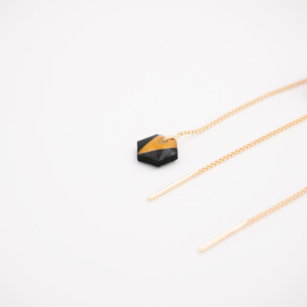 Boucles d’oreilles Hexagone en Calebasse séchée chaîne traversante en Acier Doré, Argent ou Plaqué Or 3 microns | Hex Pic – Canard-Jaune