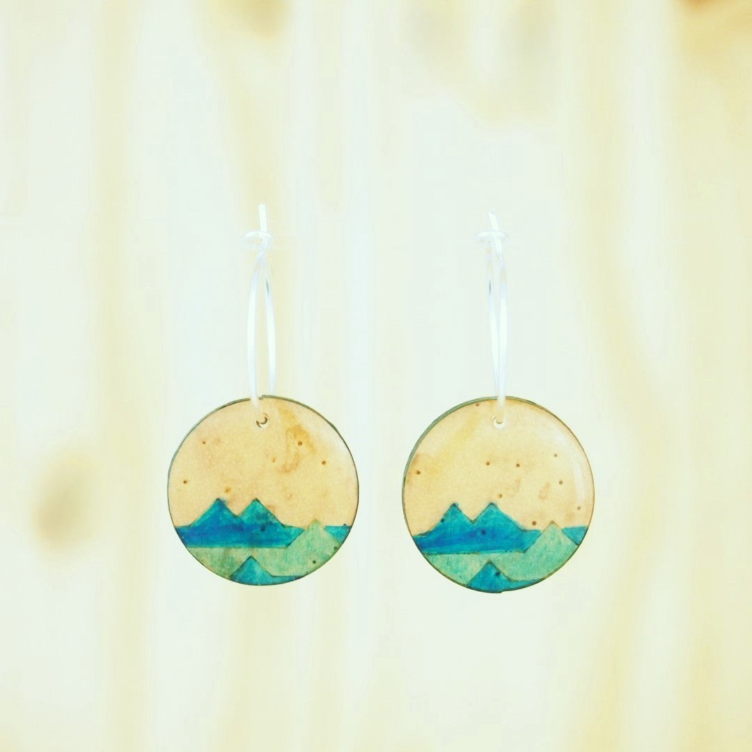 Boucles d’oreilles graphiques ronds colorées en calebasse séchée (totumo).
