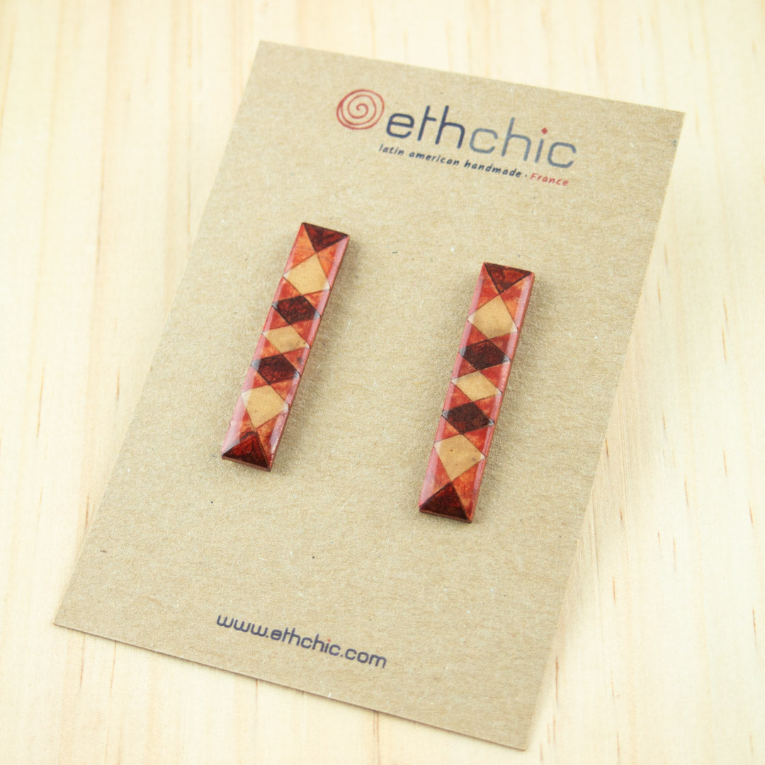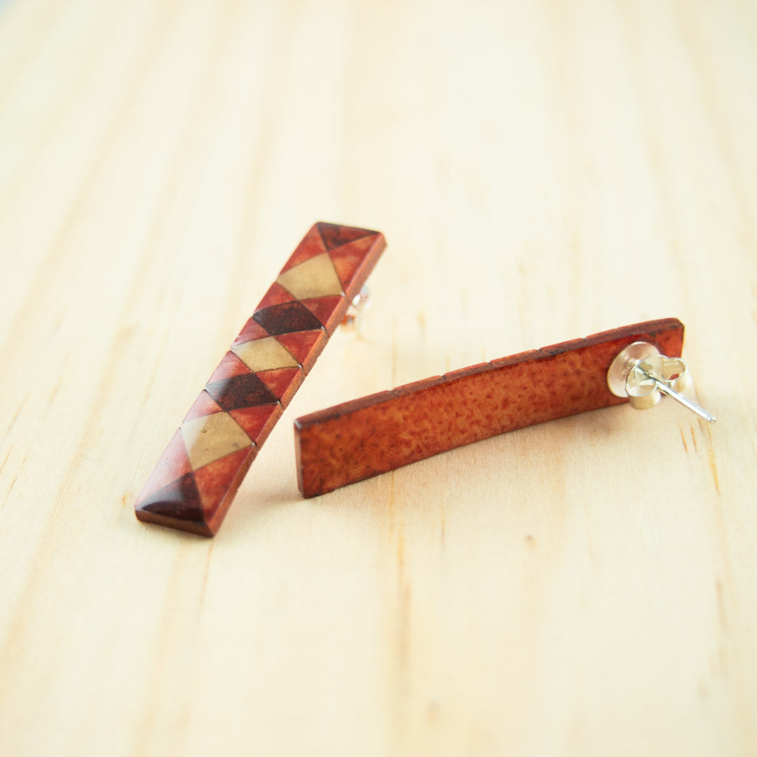 Boucles d'oreilles en Calebasse séchée et argent 925 Rectangulaires | Cari Rec Los