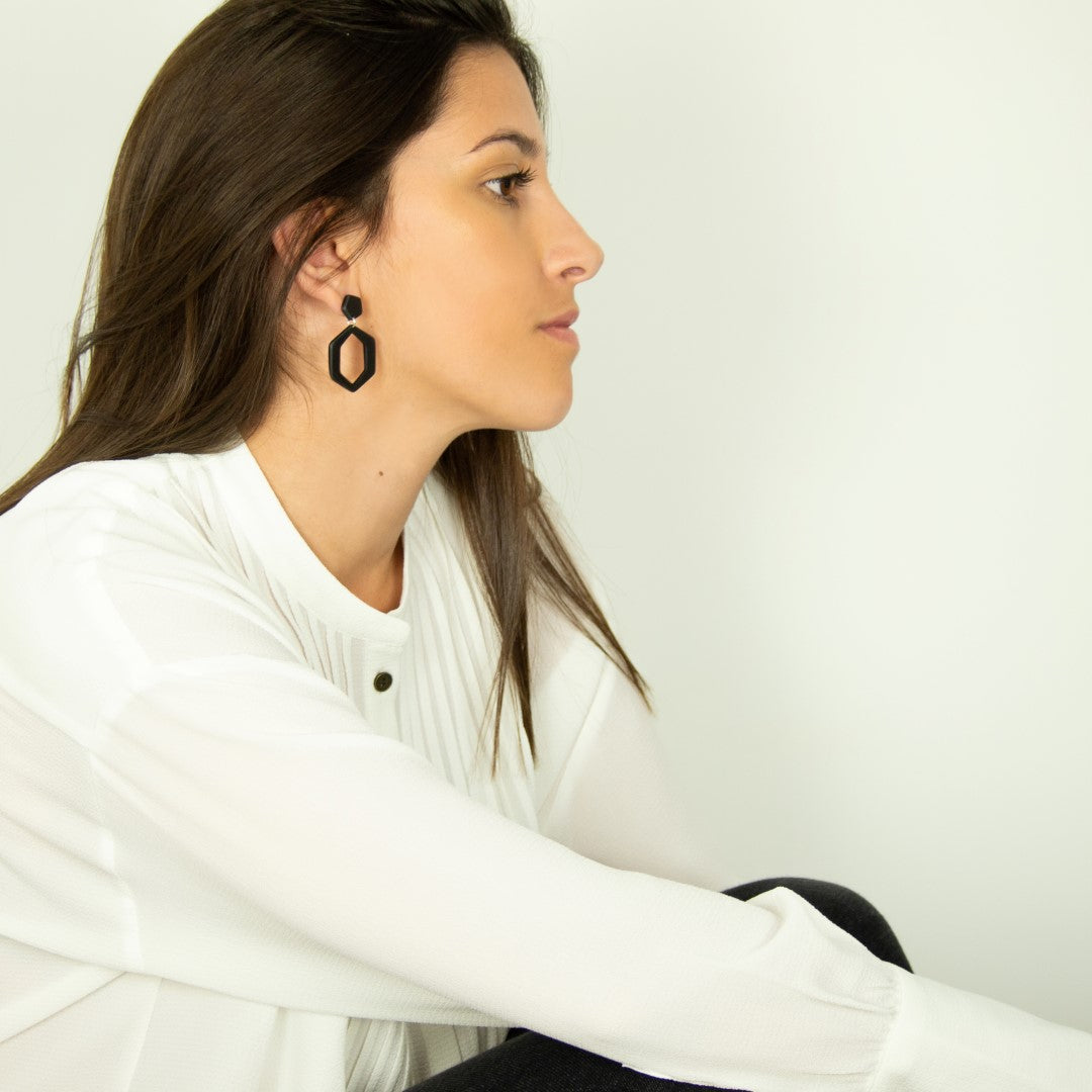 Boucles d'oreilles Hexagonales en Ivoire Végétal | Hexa Large – Noir