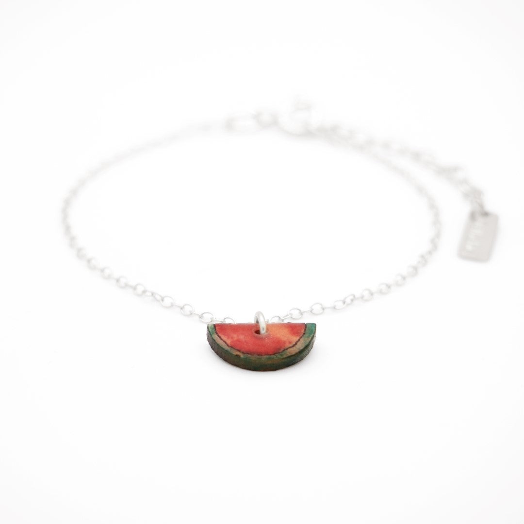 Bracelet Mini Charm Fruit en Calebasse Séchée - Chaîne Fine Argent ou Doré – Pastèque