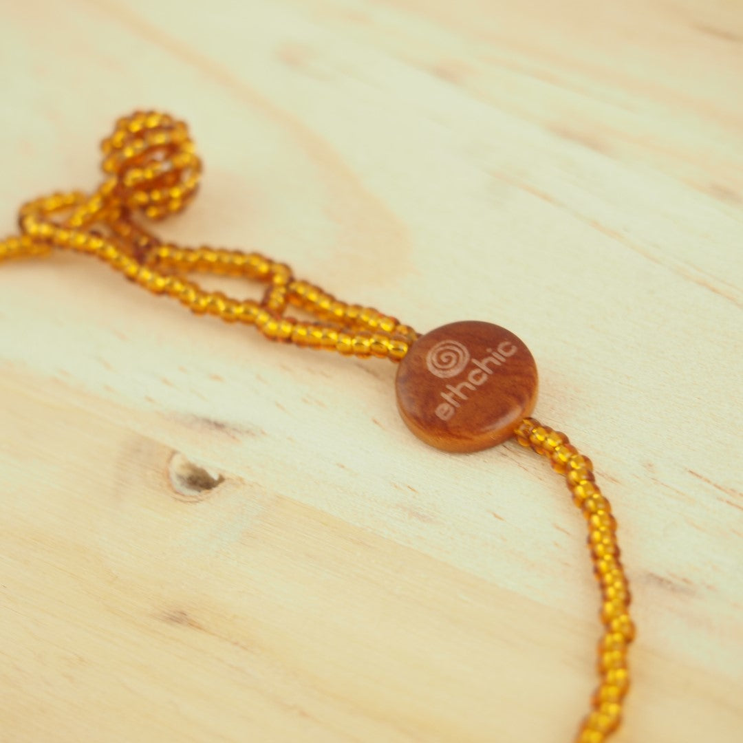 Collier miel, tissé en perles de rocaille dans un style minimaliste et élégant.