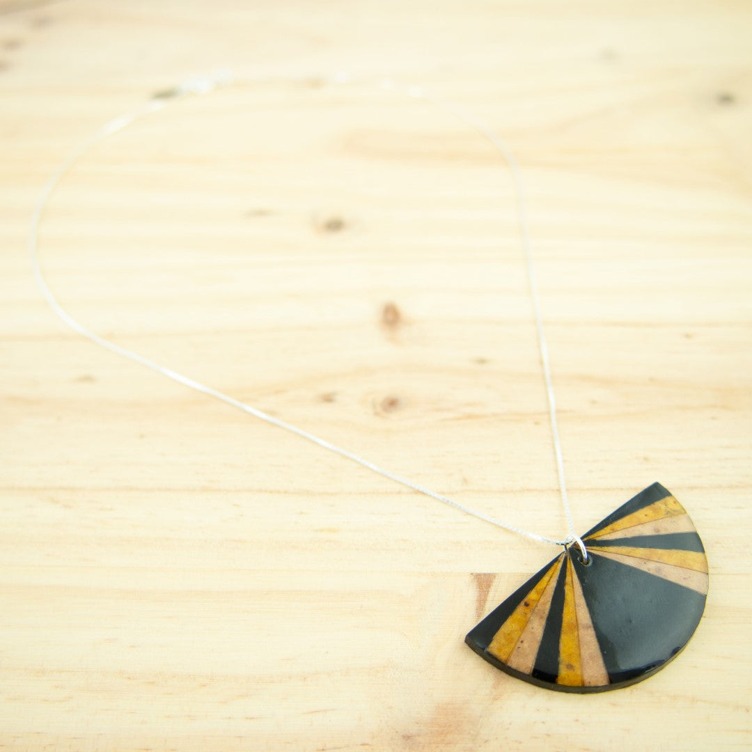 Collier végan en Calebasse séchée fait main chaîne Argent | Demi Pav – Noir -Moutarde - Beige